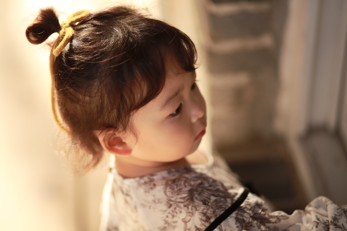 아이의 시선과 포즈를 좀 더 자연스럽게