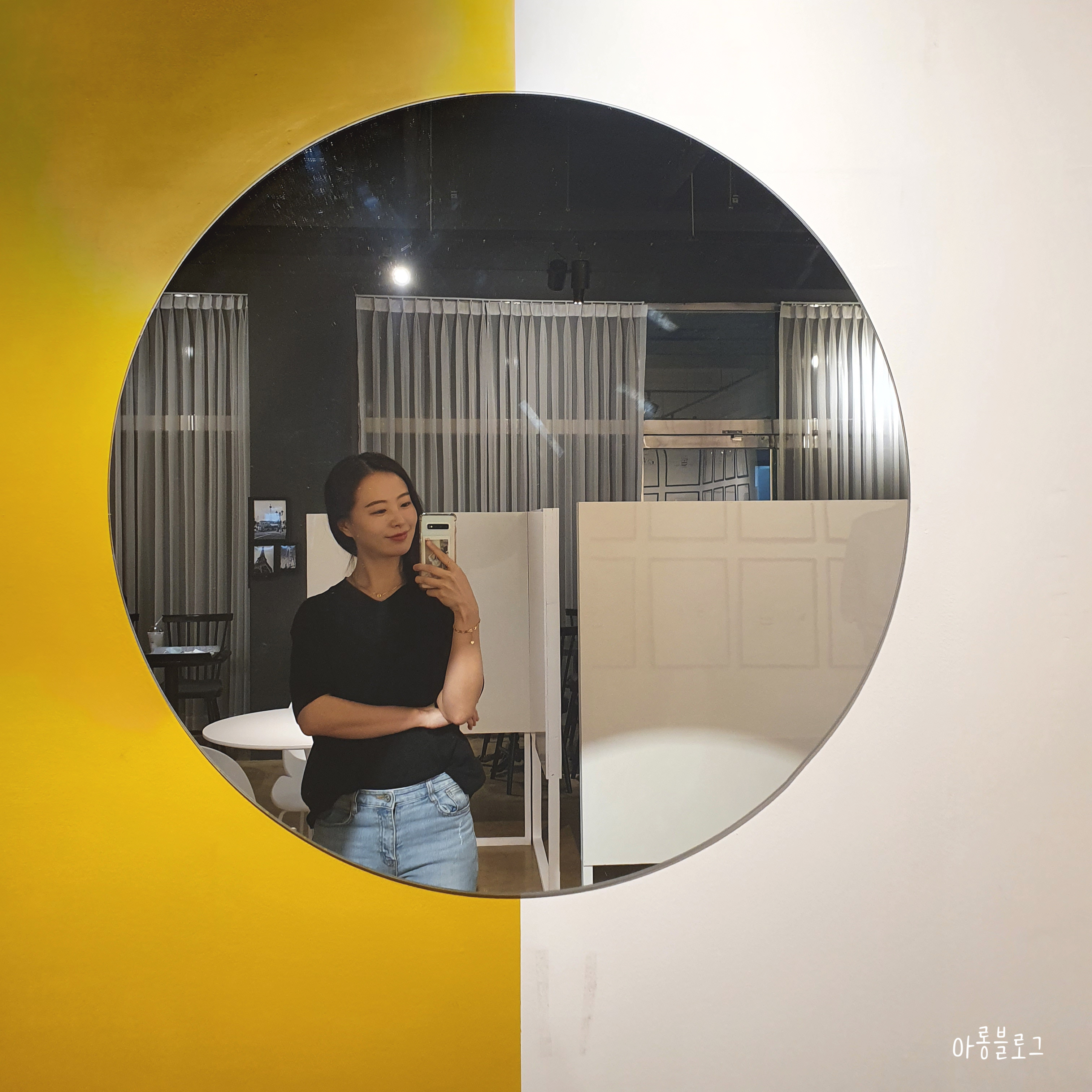 노란포인트가 예뻣던 거울포토존에서