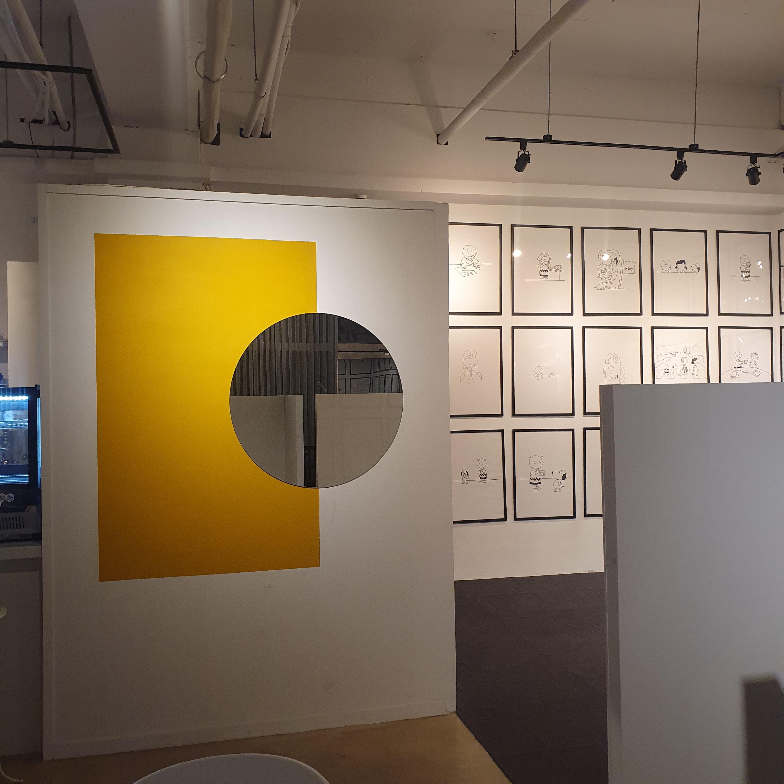 스누피 액자들로 꾸며진 갤러리와