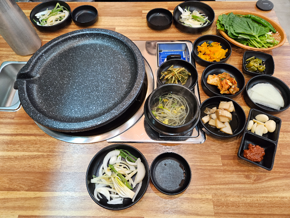 기본 반찬은 세팅해 주고 부족한 반찬들은 셀프바에 준비되어 있어