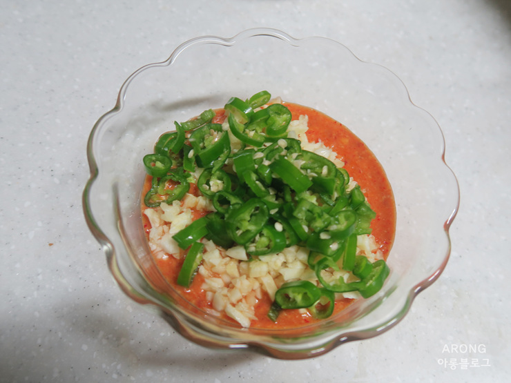 양념장도 고추와 마늘을 곁들어 만들어 주고