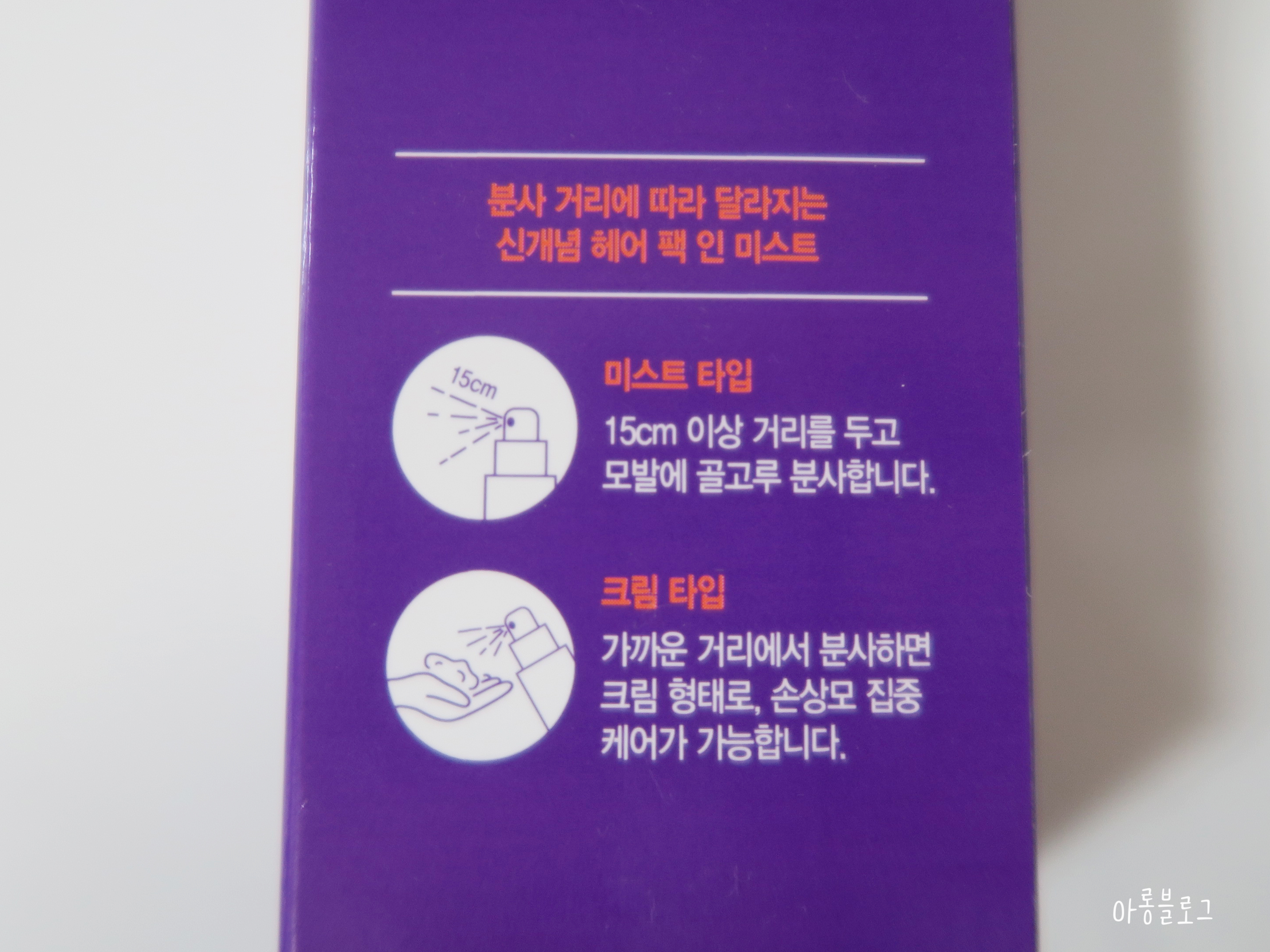 크림 타입은 가까운 거리에서 분사하면 크림형태로 , 손상모집중케어가 가능하다