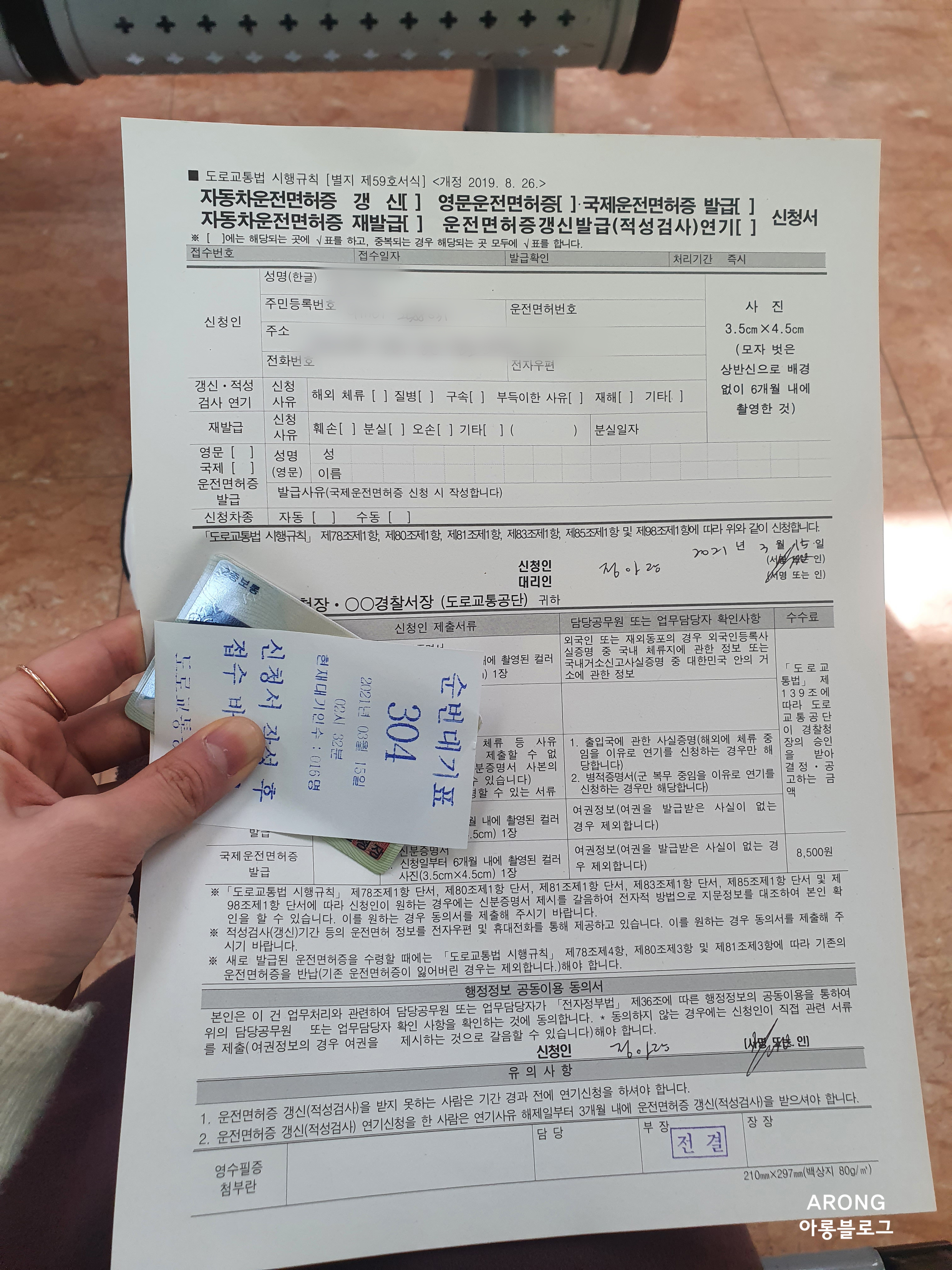 내 순서가 되고 신청서와 면허증을 먼저 제출하고