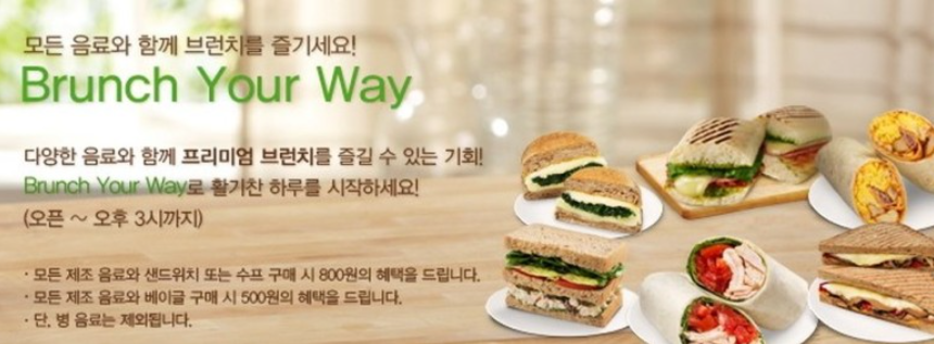 오픈부터 오후 3시까지 모든 제조 음료+푸드 구입시 800원, 베이글과 함께 구입 시 500원이 할인 되요.