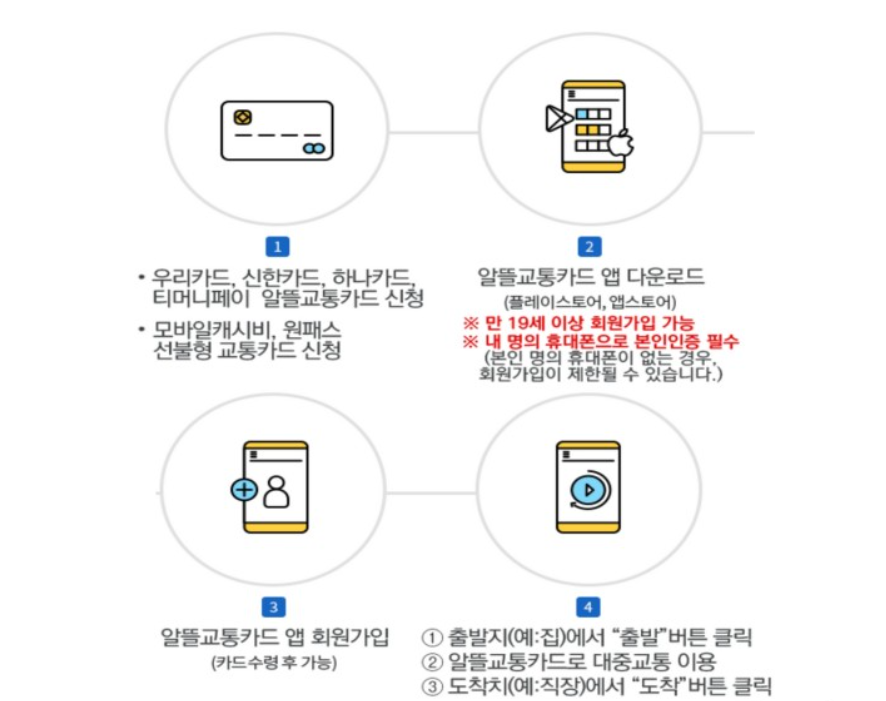 카드사의 추가 할인 혜택 포함 대중교통비를 최대 30% 절감 할수 있는 장점을 지녔다.