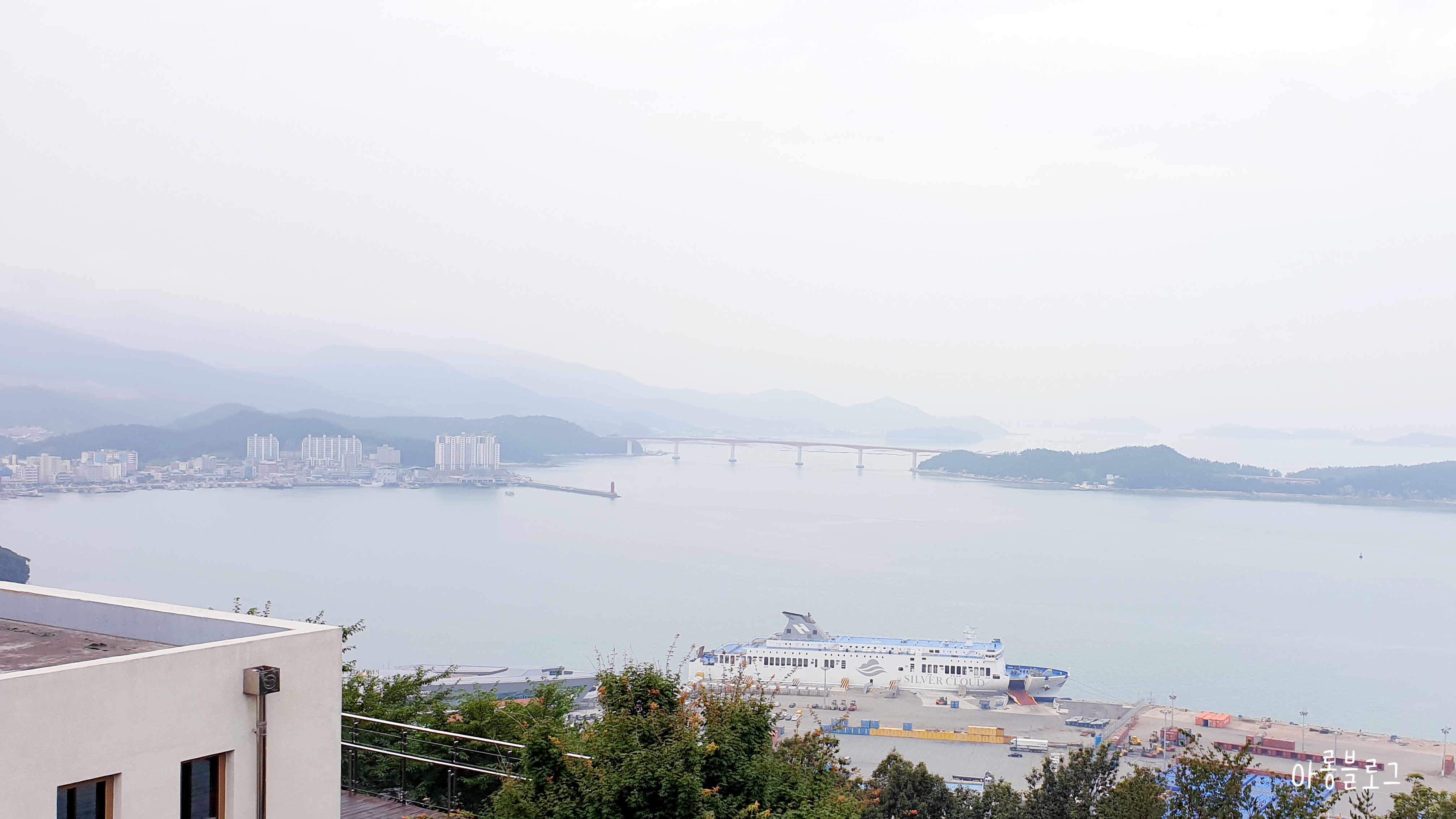 도착지에서 찍어본 저 멀리 출발지와 완도타워.
