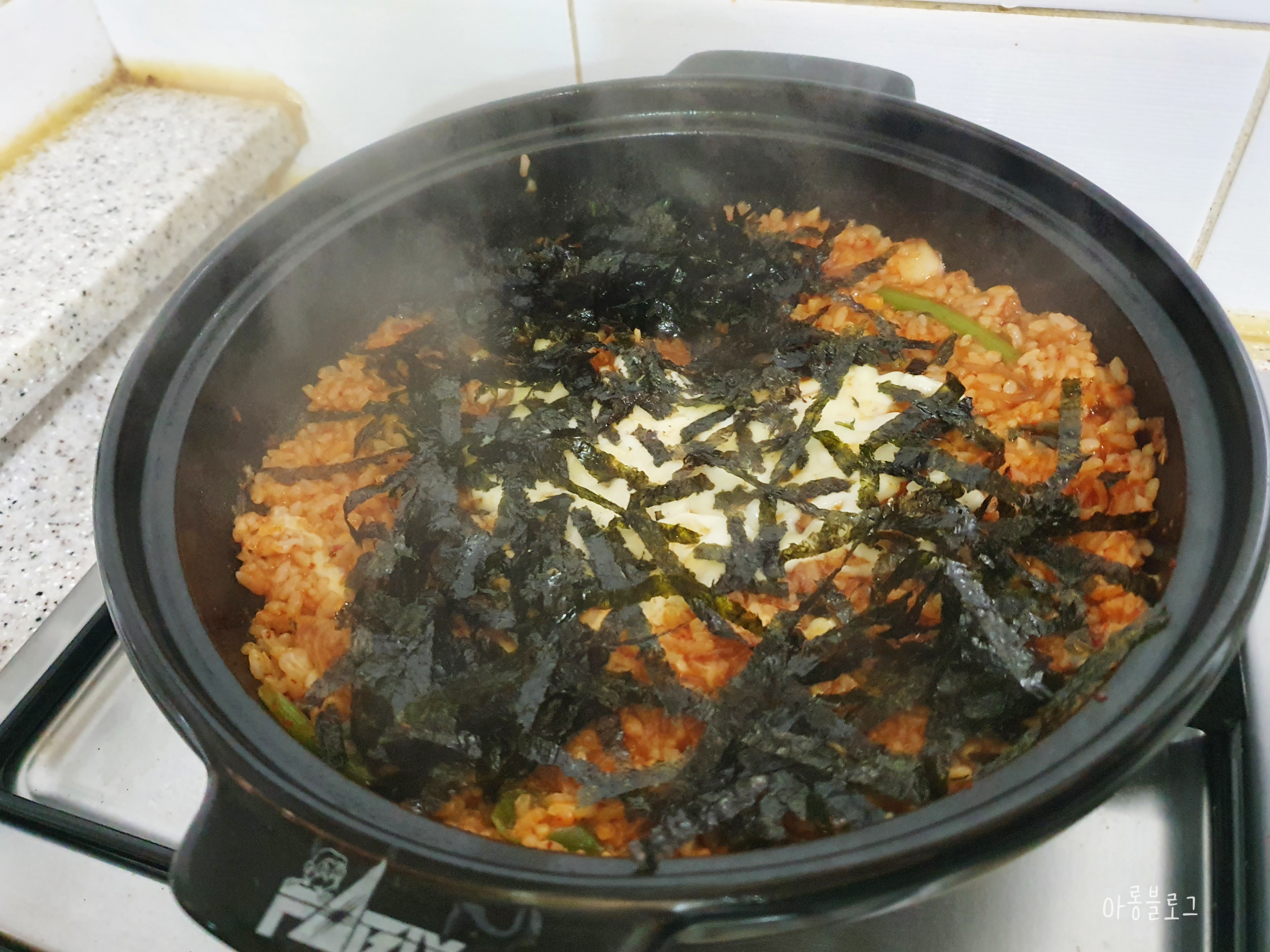 치즈와 김가루 김치 등을 넣고 같이 볶아주면