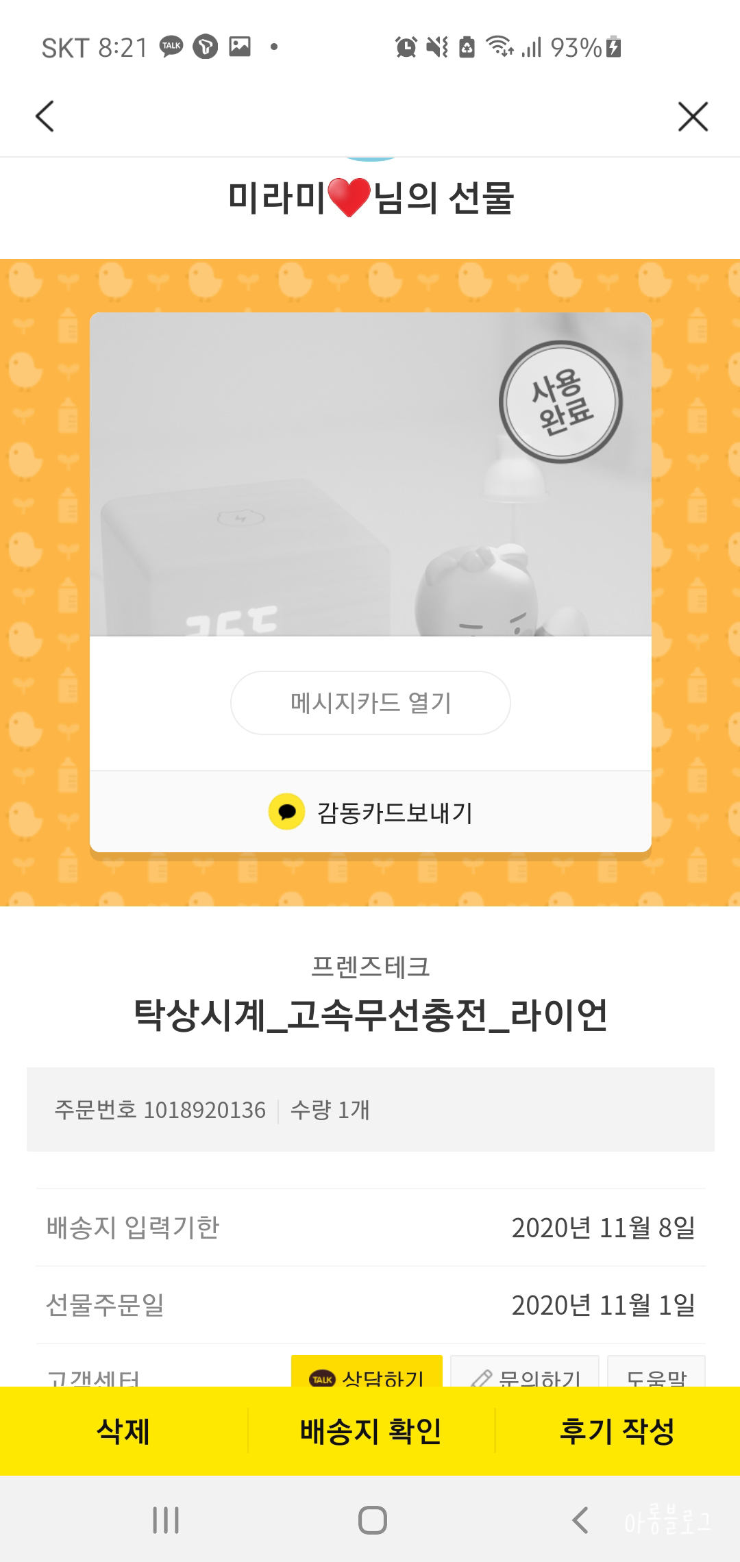 카카오프렌즈샵 탁상시계 라이언 고속충전
