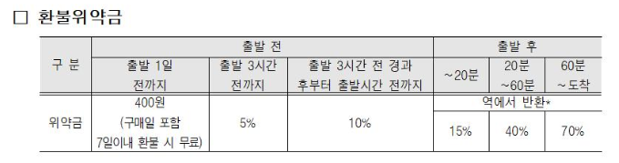 승차권 변경이 필요한 경우 반환 후 다시 재구입 해야하며 위약금이 발생합니다.