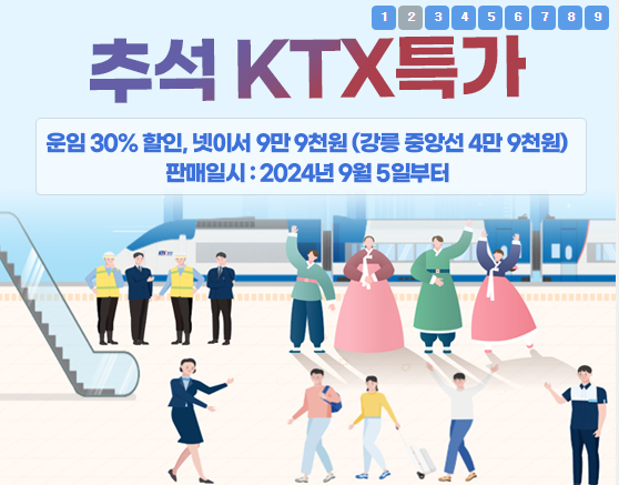 대상열차 : 9월 13일 금요일 ~ 9월 16일 수요일 기간 중 KTX 일부열차