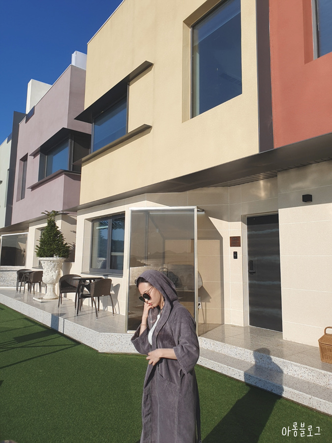 다 놀고 추우니깐 가운입고 객실로 이동_!