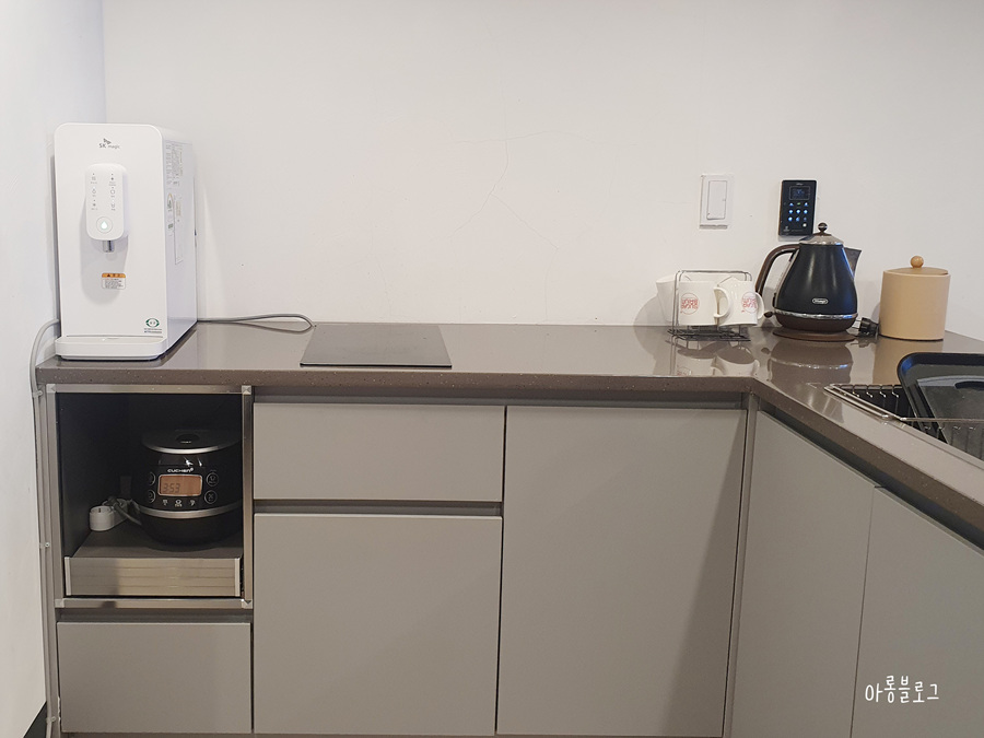 정수기도 있고 미니냉장고랑 인덕션도 있어