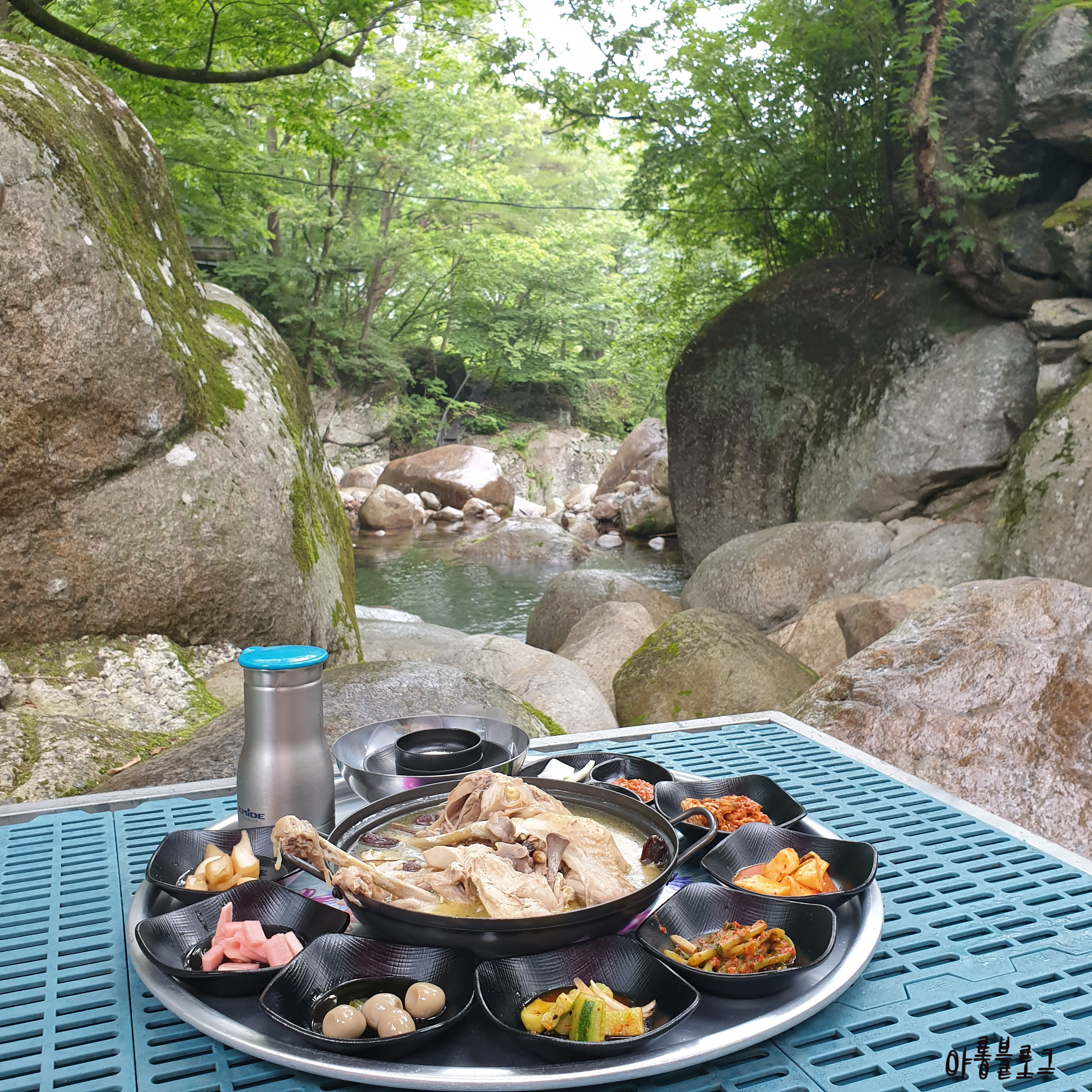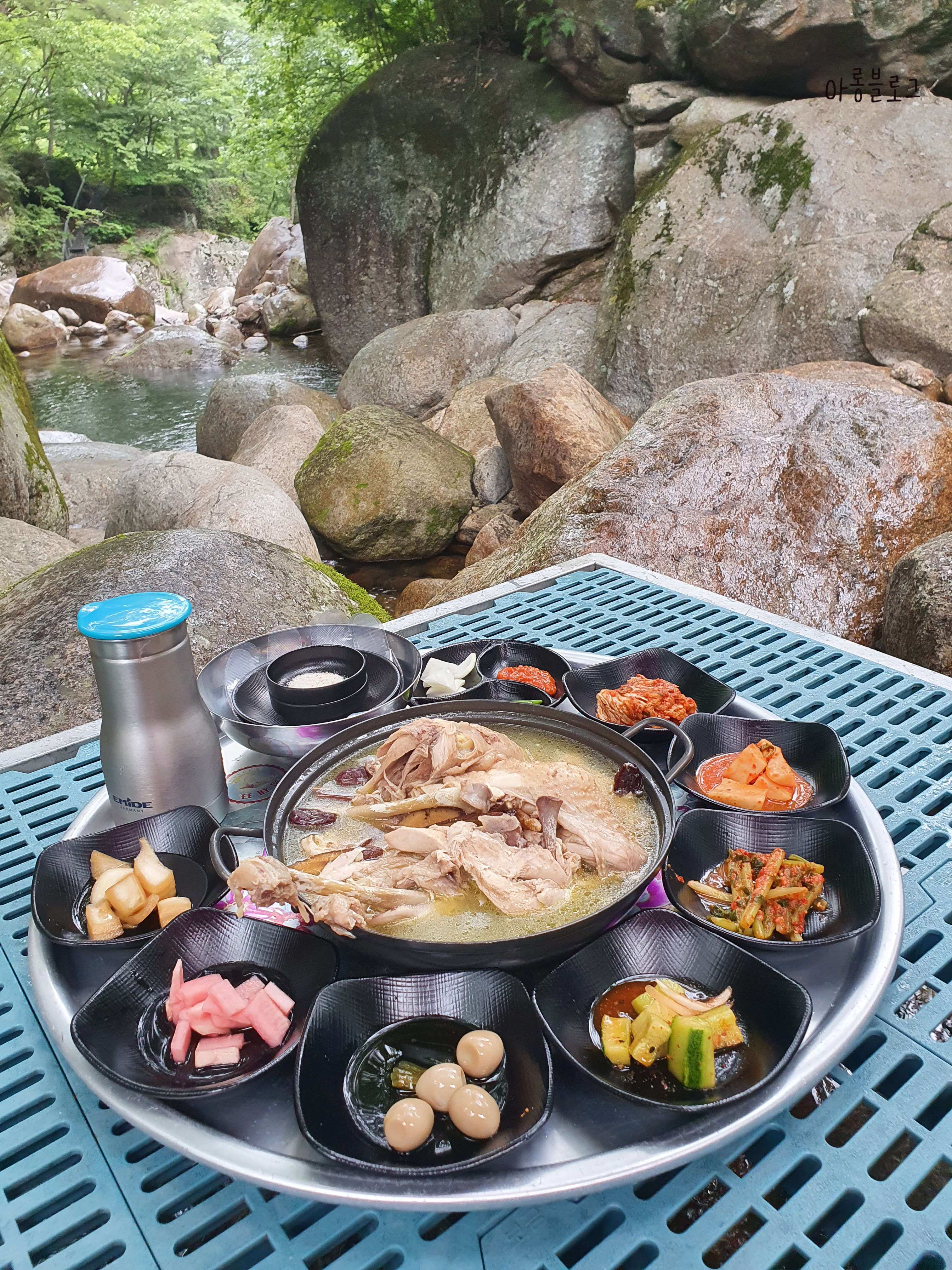 시원한 계곡을 바라보면서 먹는 백숙이란 완전 꿀맛
