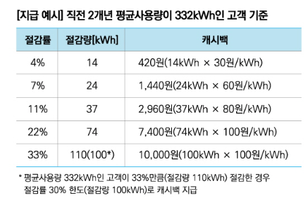 단, 전기요금을 관리비에 포함하여 납부하는 아파트 중 사용전력략 정보가 미제출된 고객, 신규 전기 사용등으로 직전 1개년 동월분 사용전력량 자료가 없는 고객, 한전이 시행하는 타 에너지 절약 프로그램 참여고객은 제외된다.