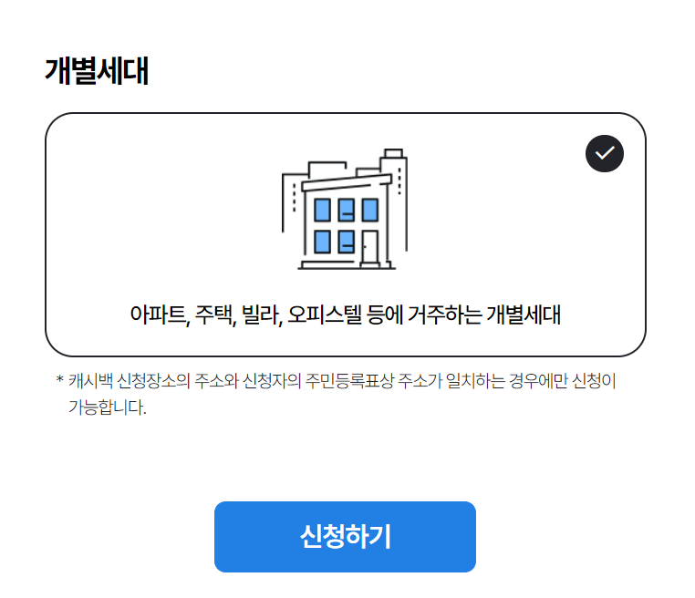 매월 산정된 캐시백은 다음달 전기요금 청구 시 반영 되며 이사 등으로 신청자의 주소지가 변경 된 경우 변경된 주민등록기준으로 다시 신청해줘야 하며 이전 주소지에서 산정된 캐시백은 지급이 제외된다.