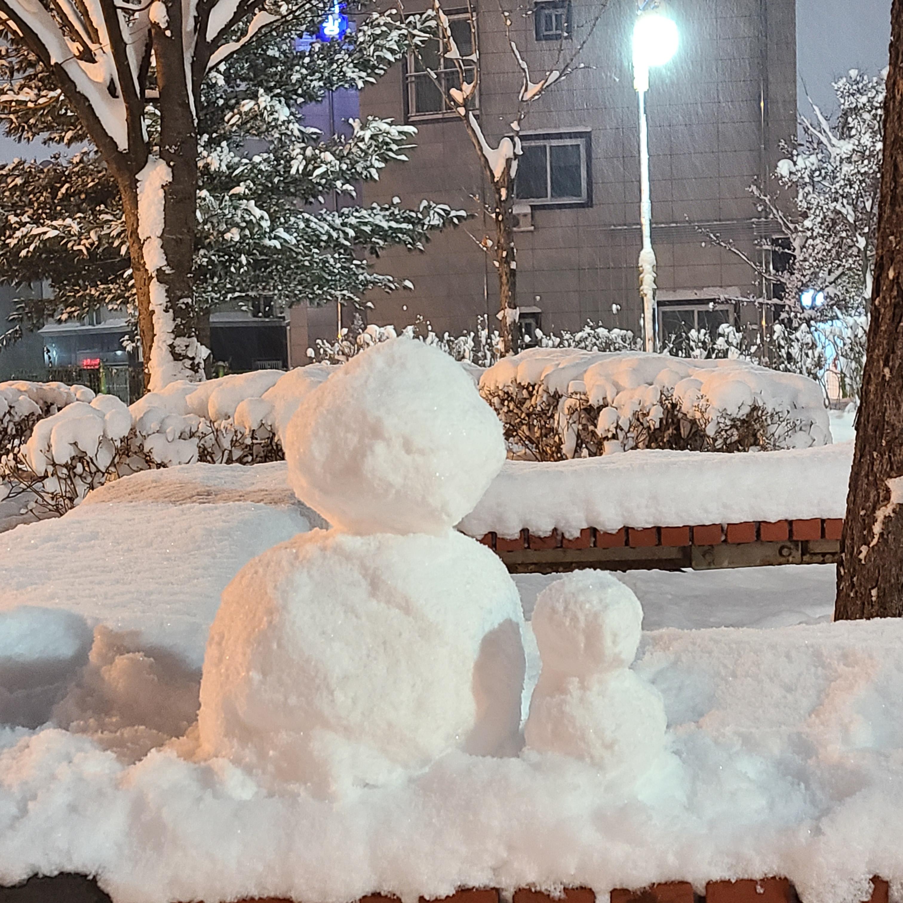 퇴근 후 동생이랑 같이 눈사람 만들러 나갔다