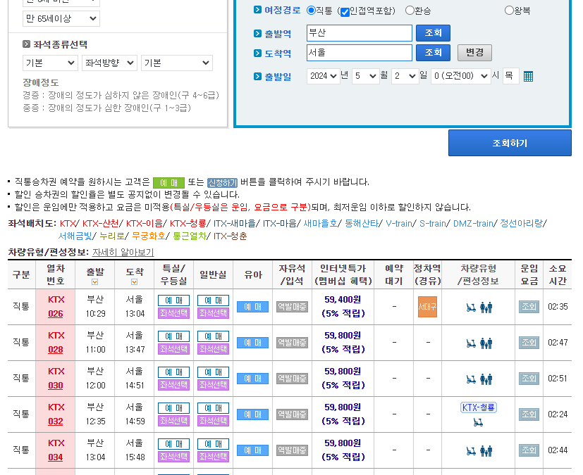 12시 35분 출발 14시 59분 도착(2시간 24분 소요)